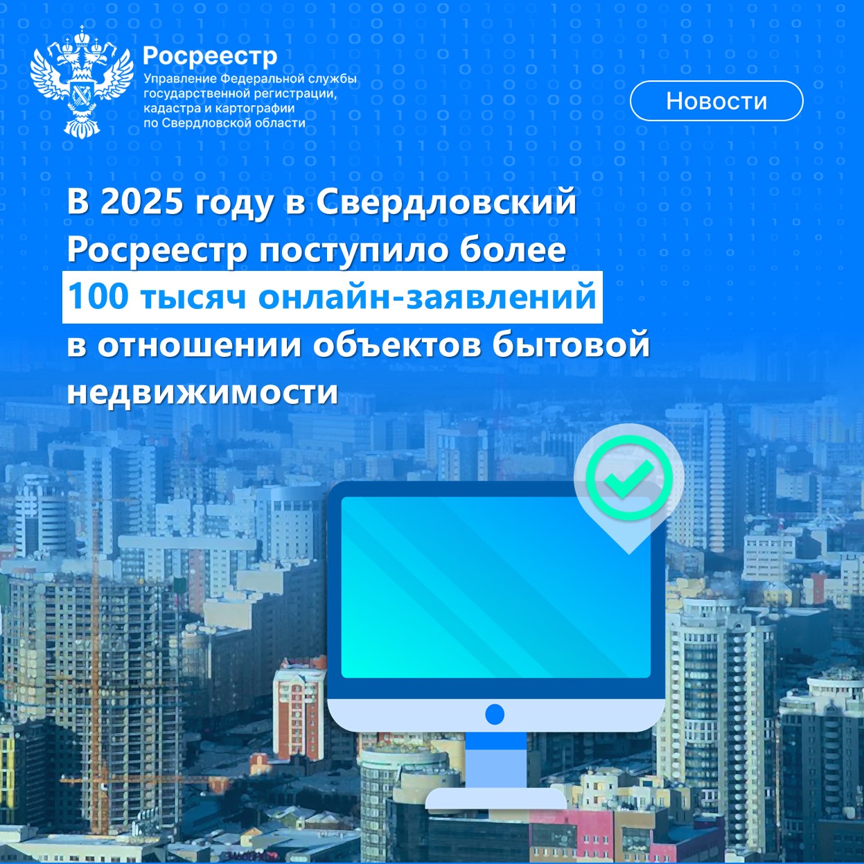 В 2025 году в Свердловский Росреестр поступило более 100 тысяч онлайн-заявлений в отношении объектов бытовой недвижимости