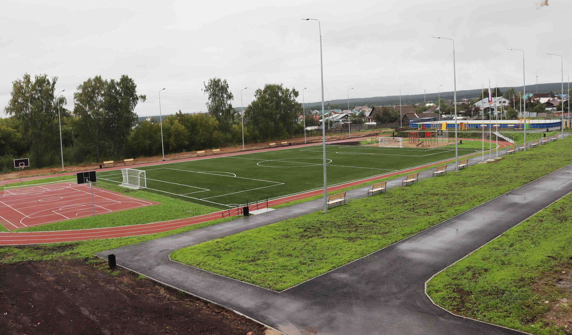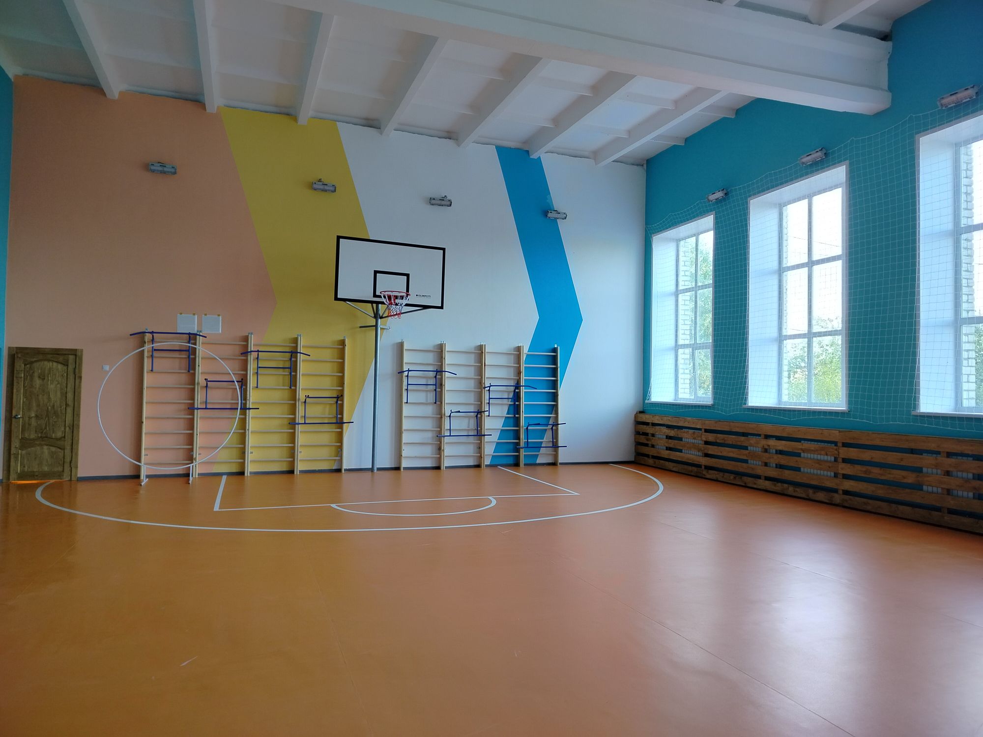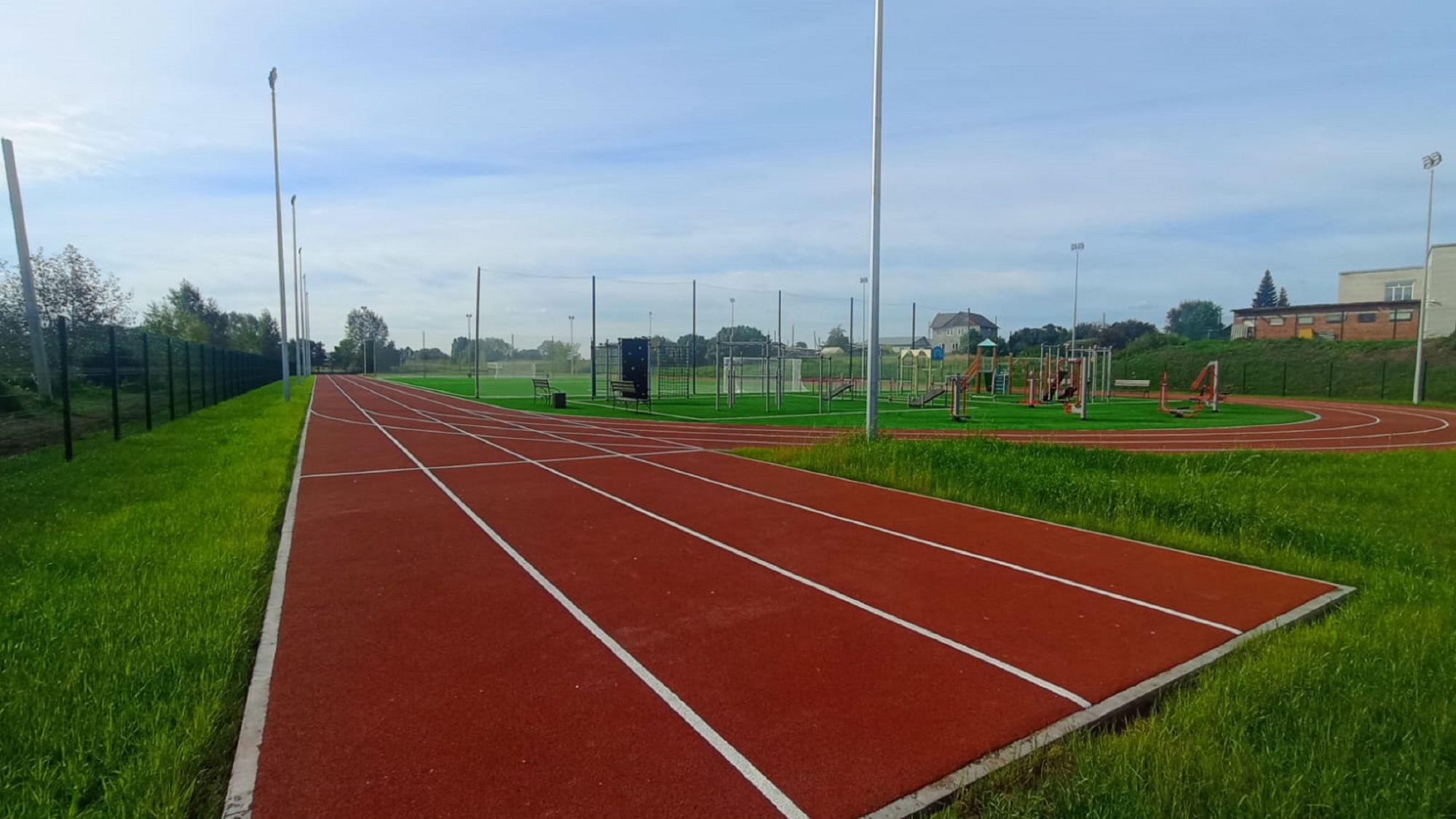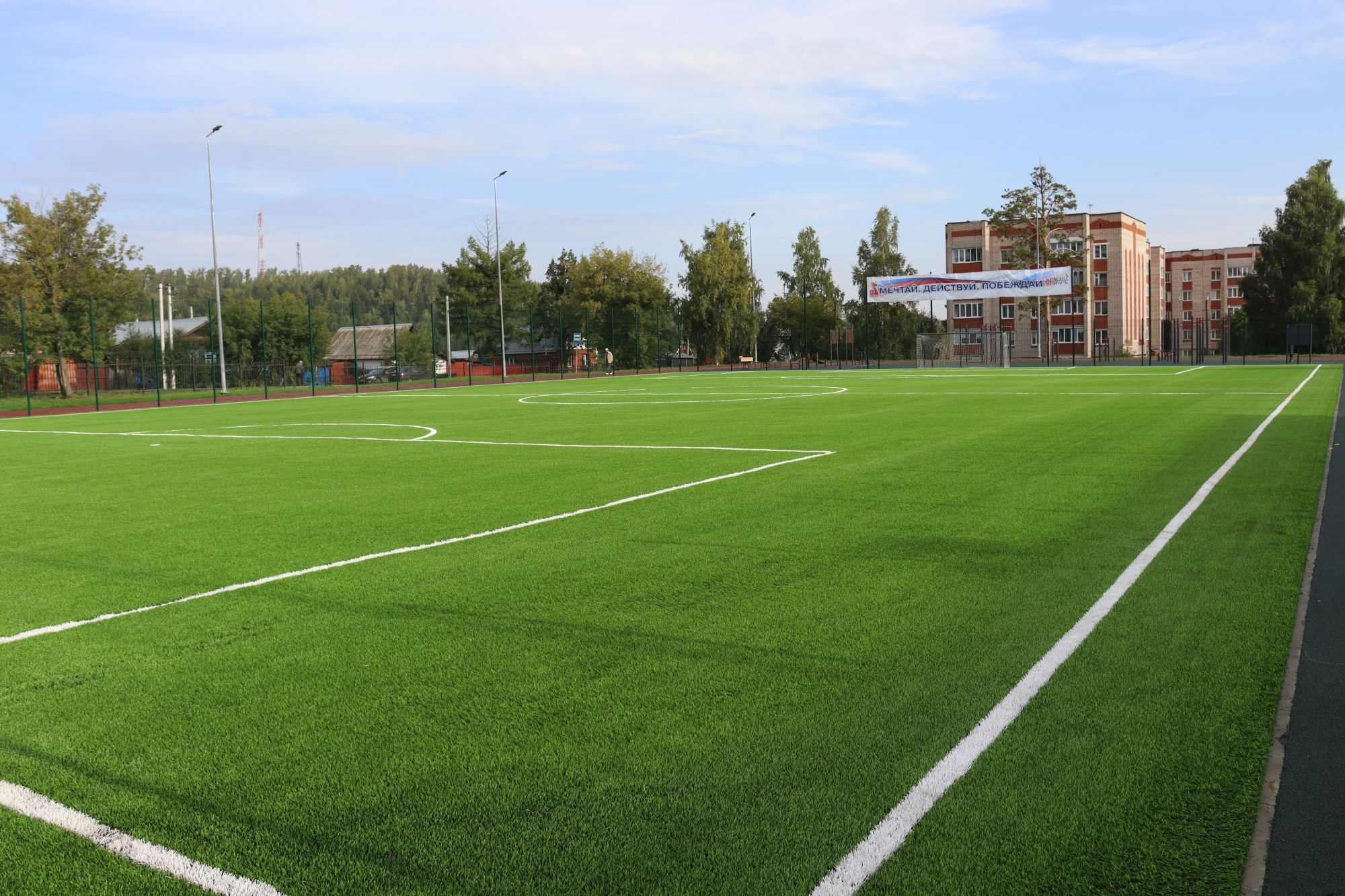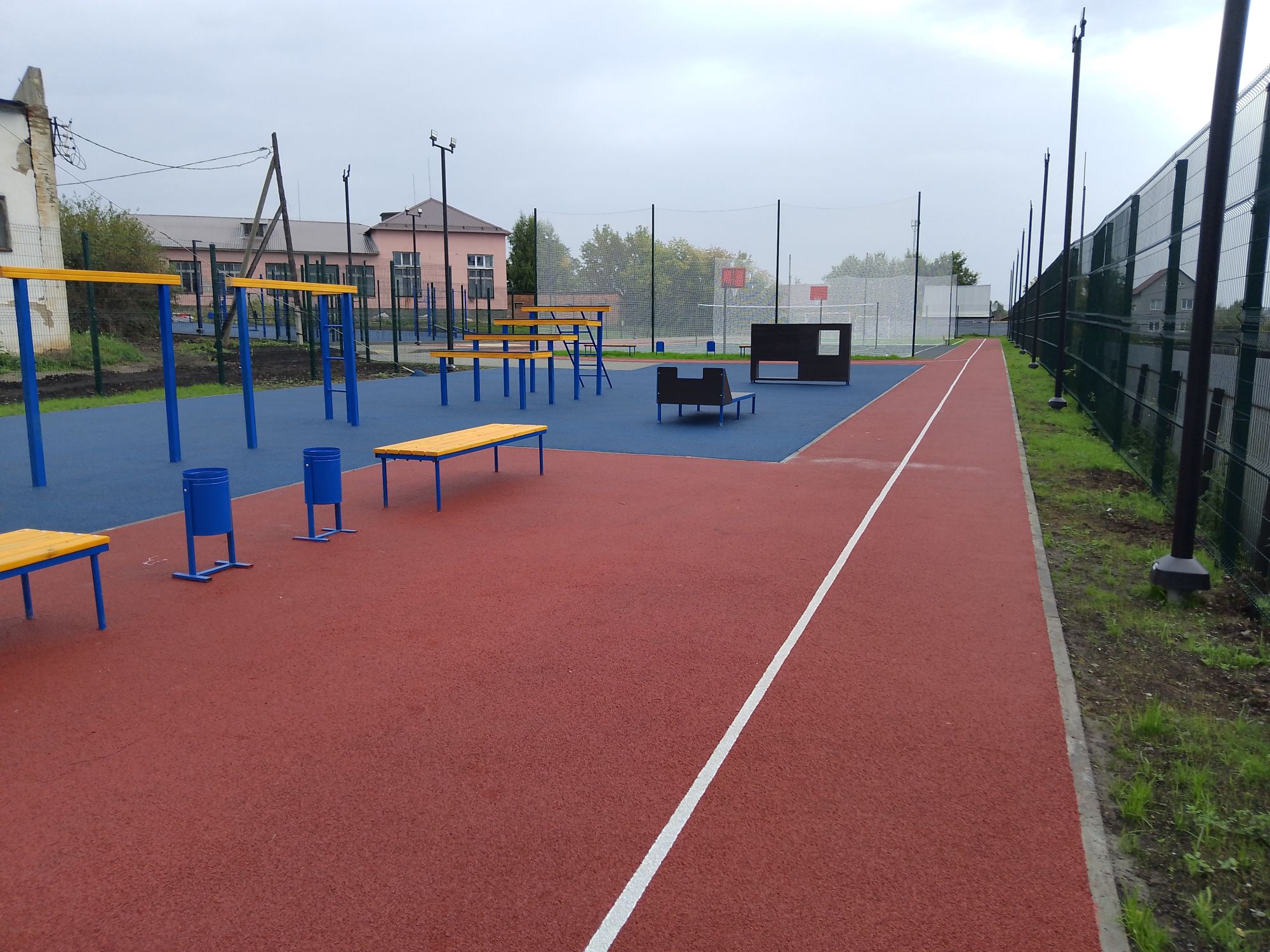 На спортивных площадках обустроены футбольные поля, беговые дорожки, площадки для баскетбола и волейбола, прыжковые ямы, площадки с уличными тренажерами, в спортивных залах наряду с ремонтными работами установлено современное спортивное монтируемое оборудование: баскетбольные щиты, шведские стенки.