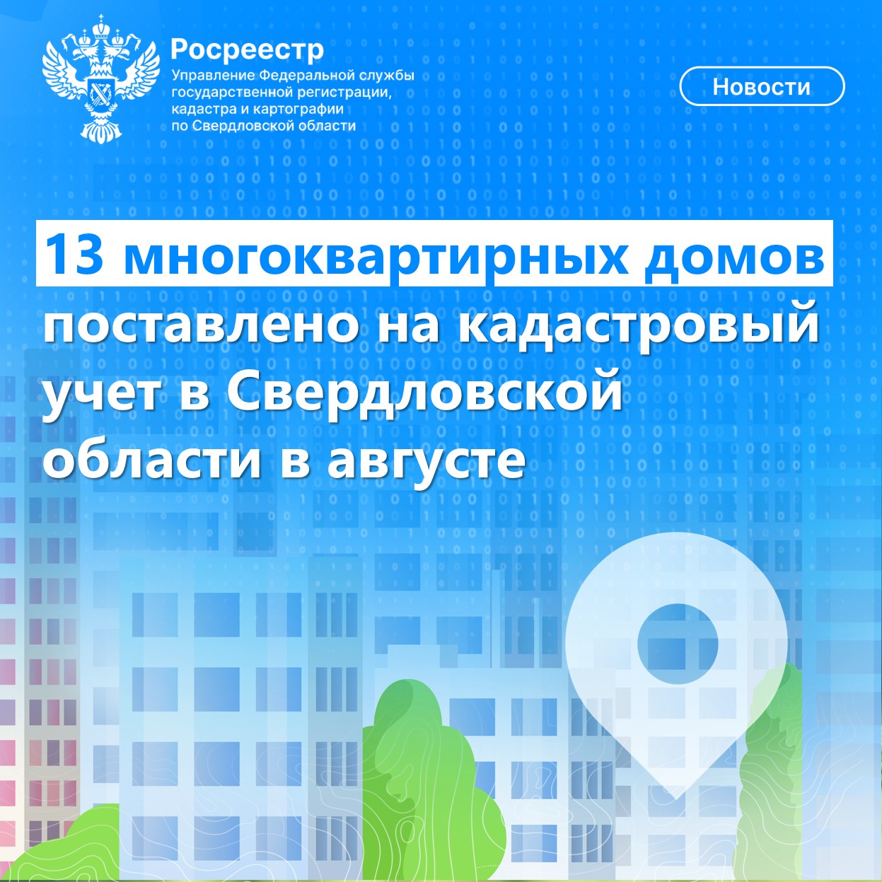 На территории Свердловской области в августе 2025 года на государственный кадастровый учет поставлено 13 многоквартирных домов.