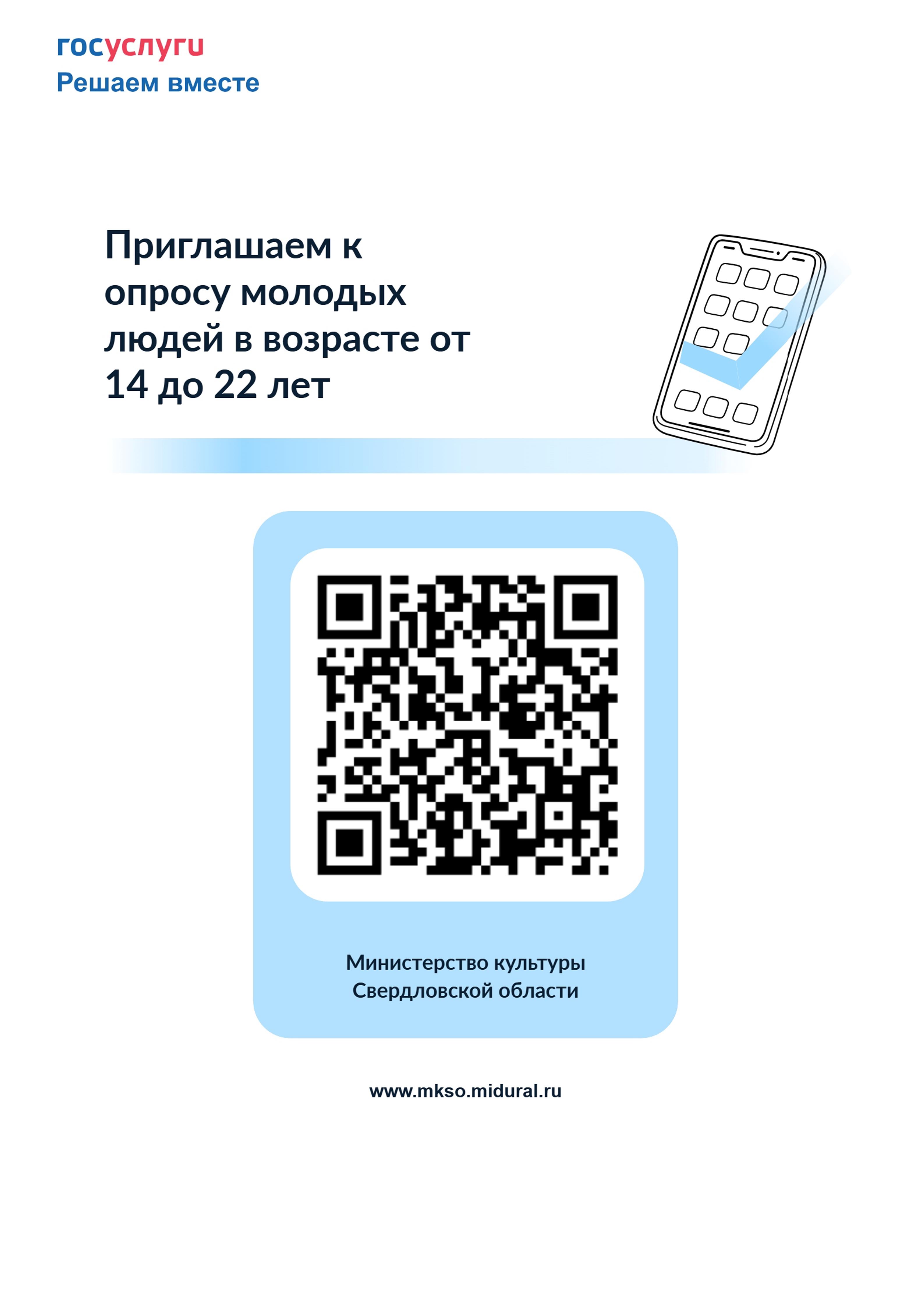 Опрос проводится на Платформе обратной связи в период с 1 по 31 октября 2025 года и доступен только жителям Свердловской области в возрасте от 14 до 22 лет после авторизации посредством подтвержденной учетной записи портала «Госуслуги».