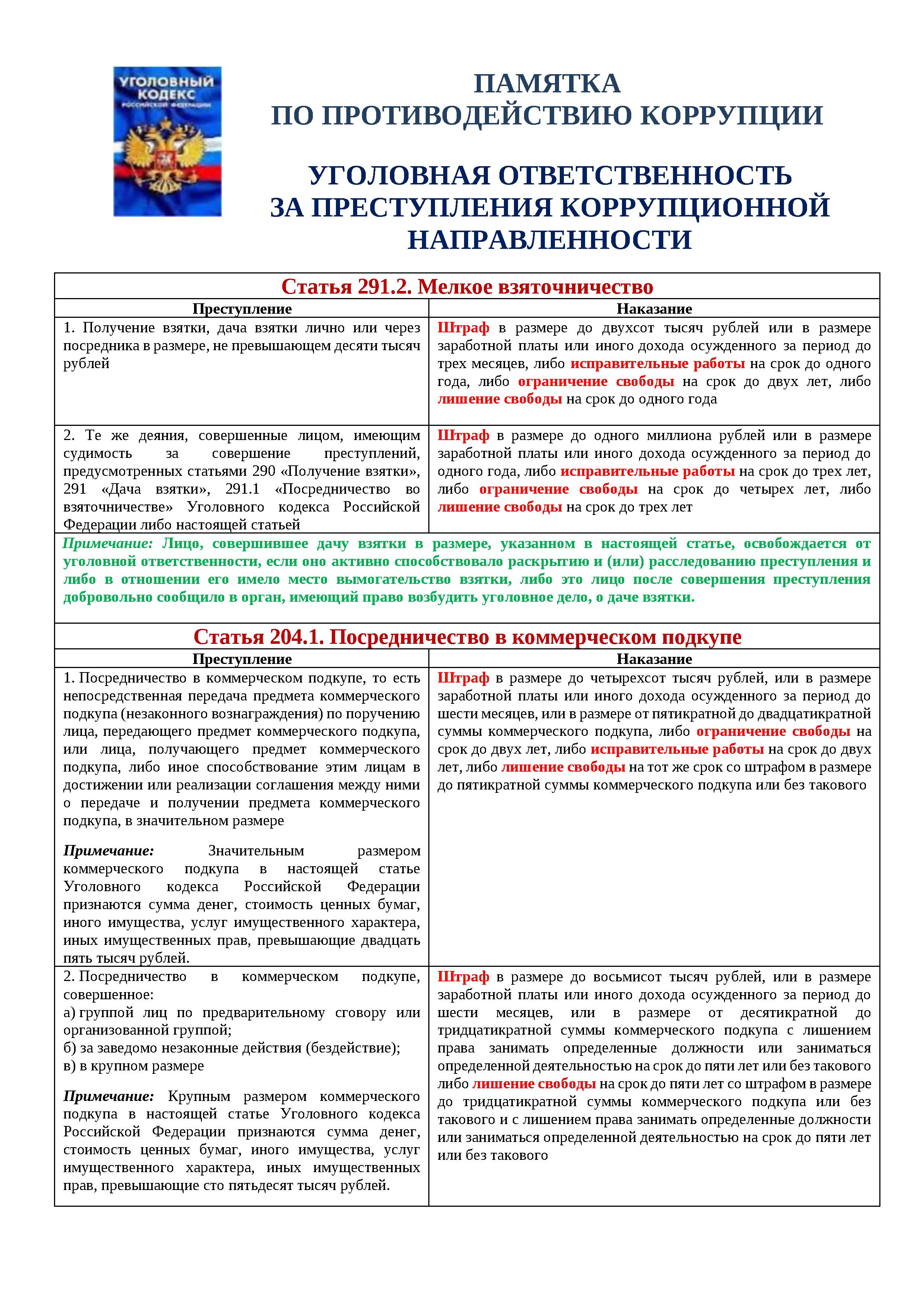 УГОЛОВНАЯ ОТВЕТСТВЕННОСТЬ ЗА ПРЕСТУПЛЕНИЯ КОРРУПЦИОННОЙ НАПРАВЛЕННОСТИ
