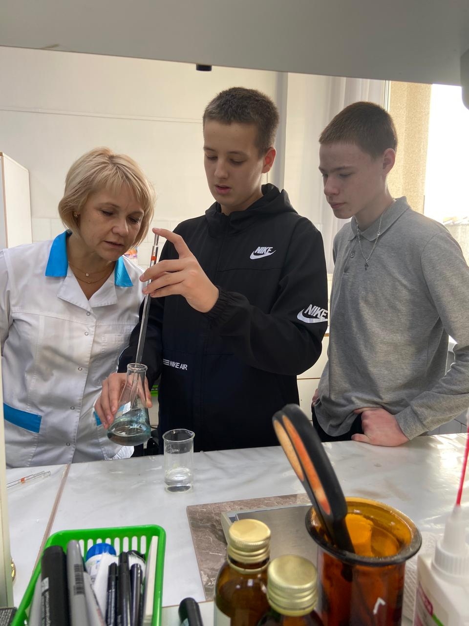 Учащиеся узнали, что такое шум и освещенность, а также познакомились с титриметрическим методом анализа, который применяется для определения концентрации веществ.