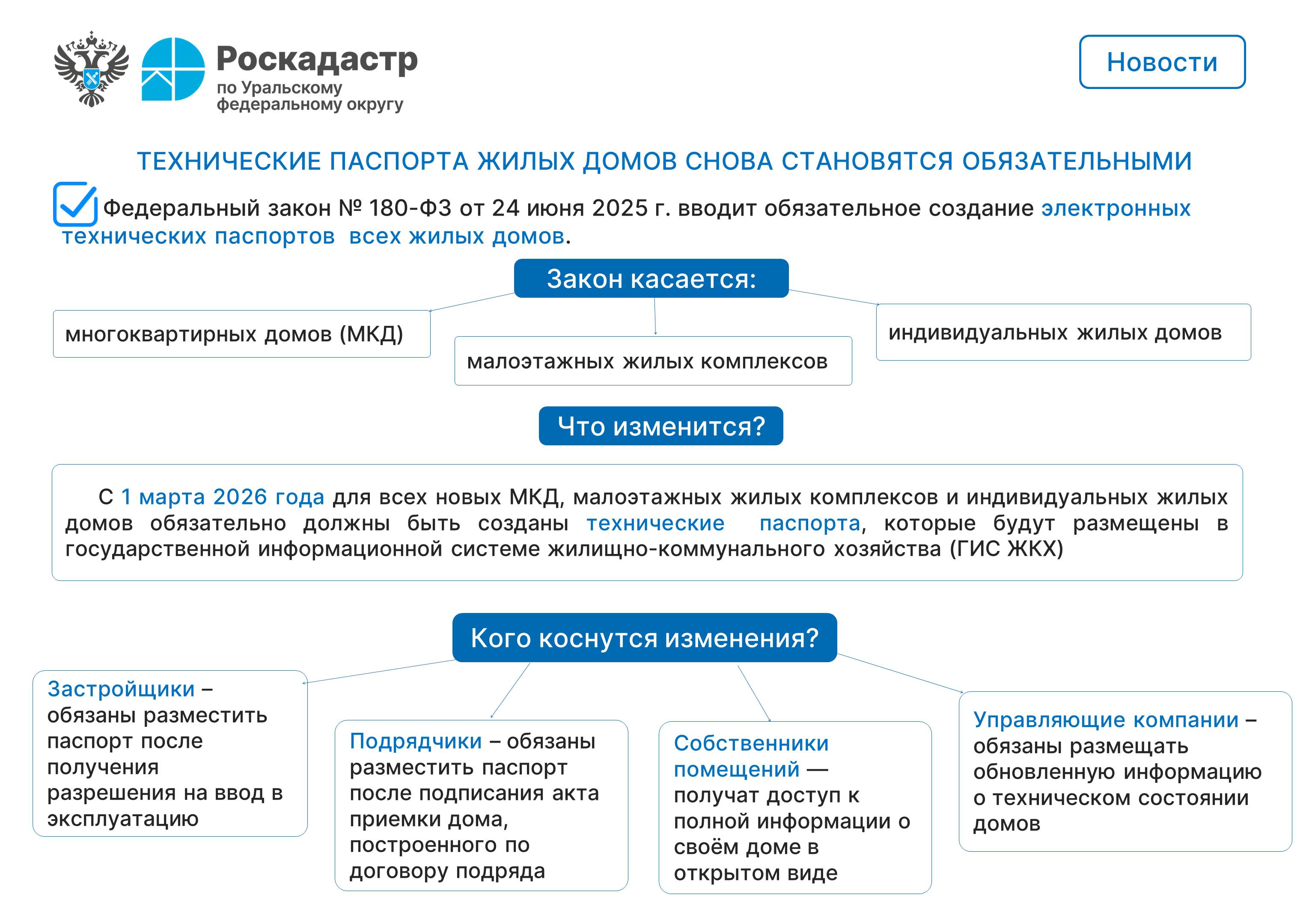 Федеральный закон № 180-ФЗ от 24 июня 2025 г. вводит обязательное создание электронных технических паспортов всех жилых домов.