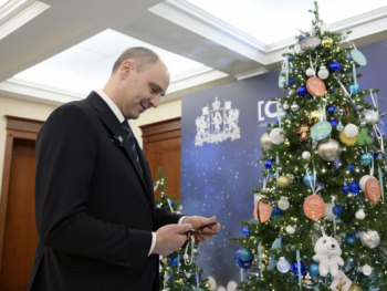 Губернатор Свердловской области Денис Паслер присоединился к Всероссийской акции «Ёлка желаний» и снял два шарика с мечтами детей.