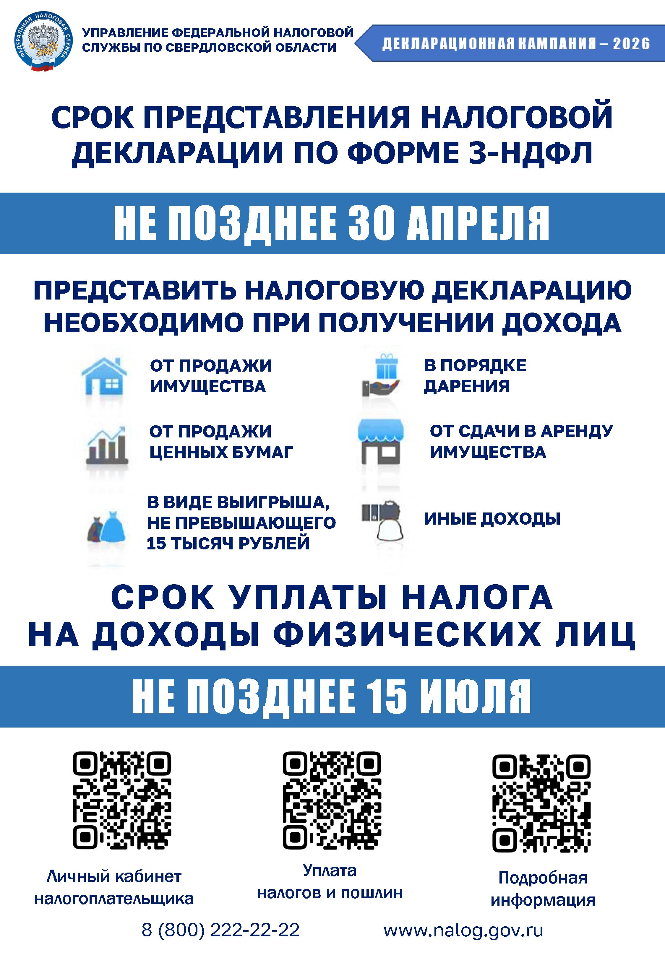 СРОК ПРЕДСТАВЛЕНИЯ НАЛОГОВОЙ ДЕКЛАРАЦИИ ПО ФОРМЕ 3-НДФЛ