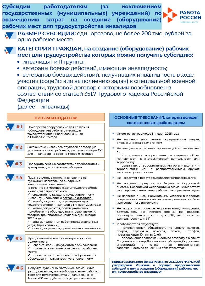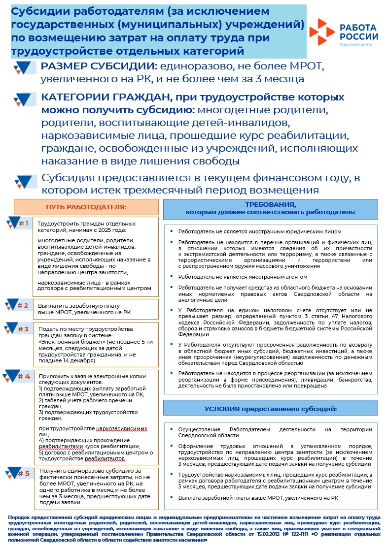 Субсидии работодателям при трудоустройстве отдельных категорий граждан в 2026 г