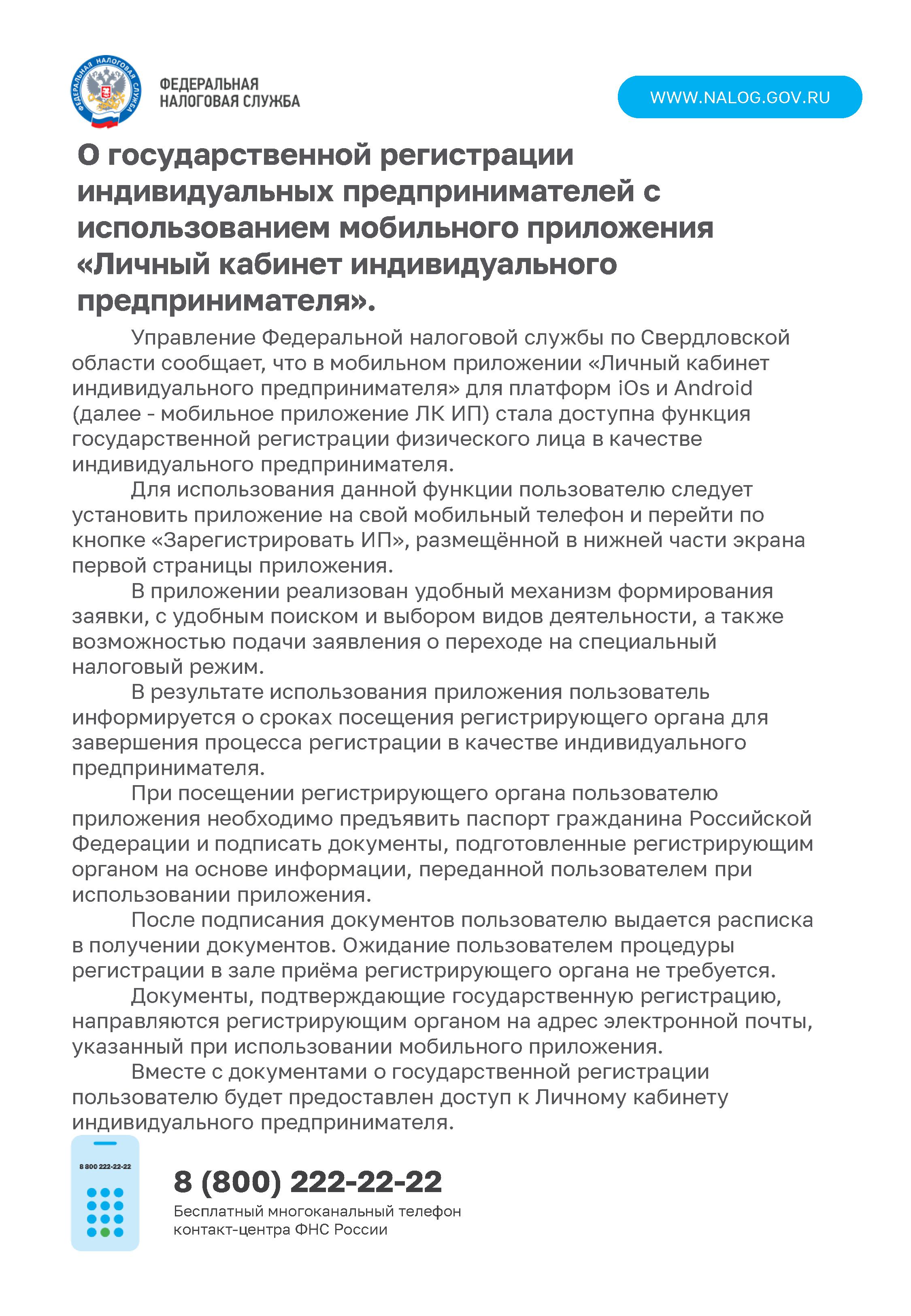 О государственной регистрации индивидуальных предпринимателей с использованием мобильного приложения «Личный кабинет индивидуального предпринимателя»