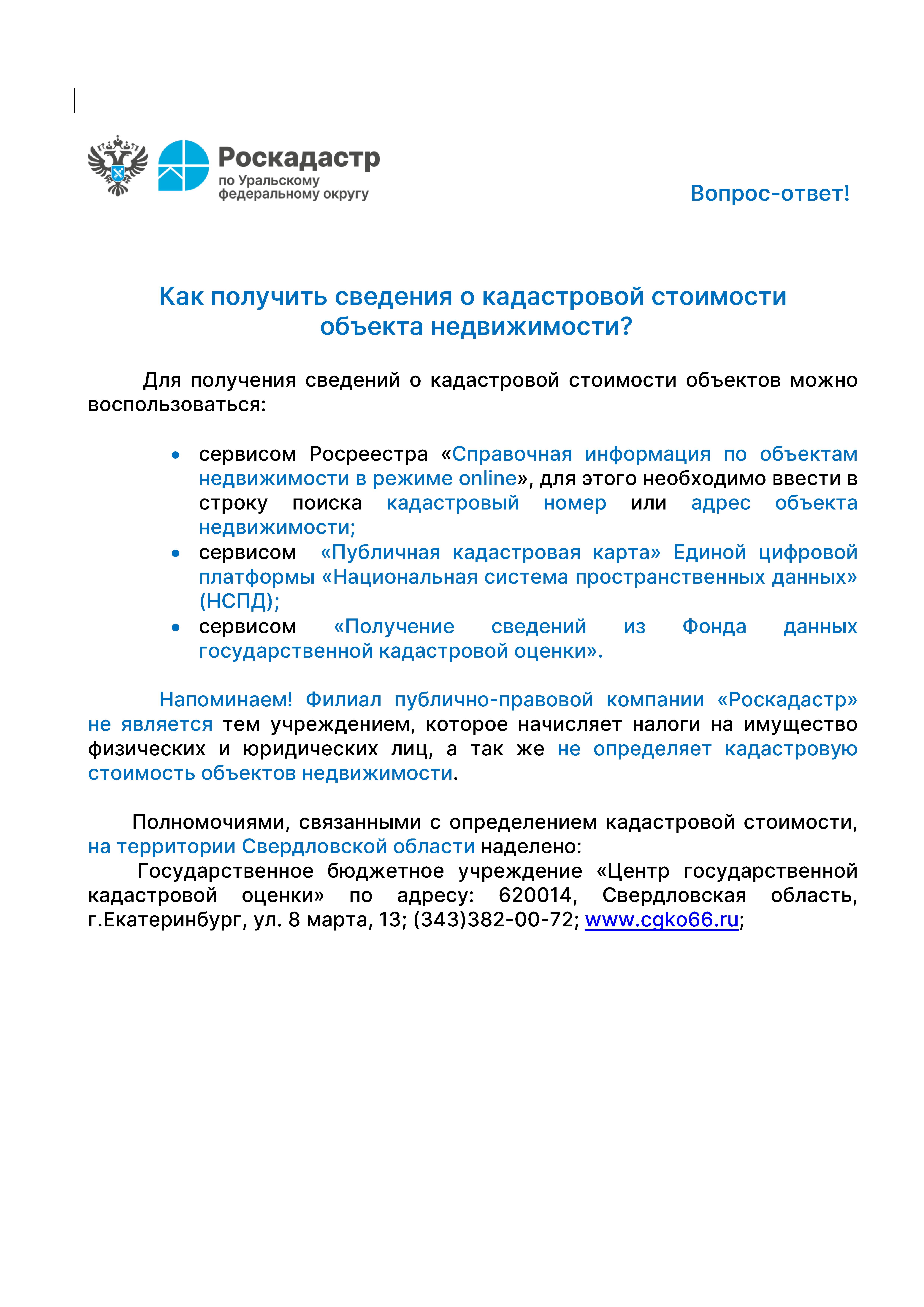 Как получить сведения о кадастровой стоимости объекта недвижимости?
